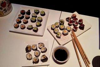 Ergens tussen de California Tempura en de Sashimi in knakte er iets. Ik. Kon. Niet. Meer.