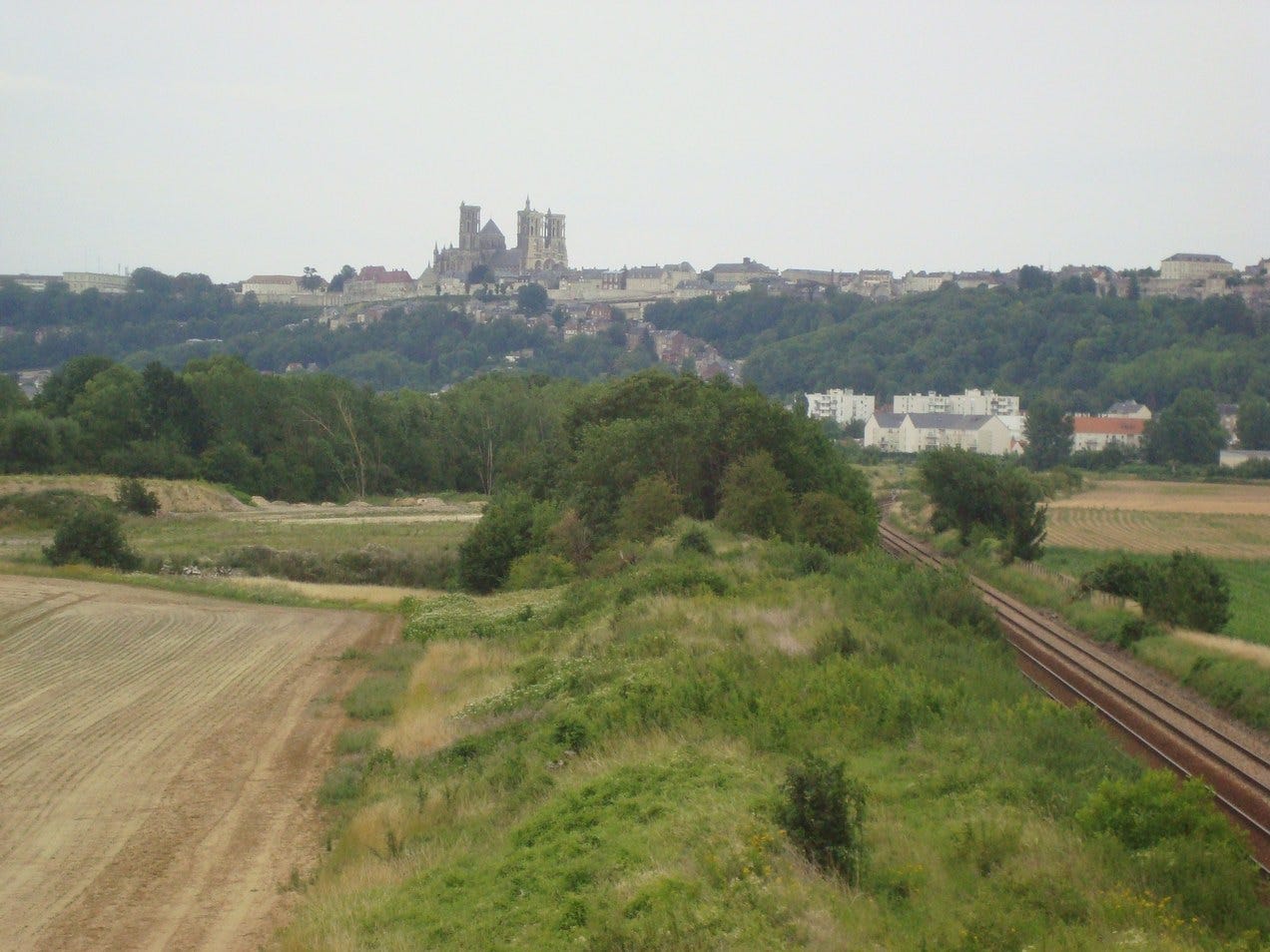 Halverwege de dag krijgen we Loan in beeld. Eerst lijken het hoge bomen op een berg, dan een grote schoorstenen van een oude fabriek en met nog vijftien kilometer te gaan, zien we dat het de prachtige kathedraal is die machtig boven de stad uit prijkt. Een soort worst die voor ons uithangt, we gaan er sneller van lopen.