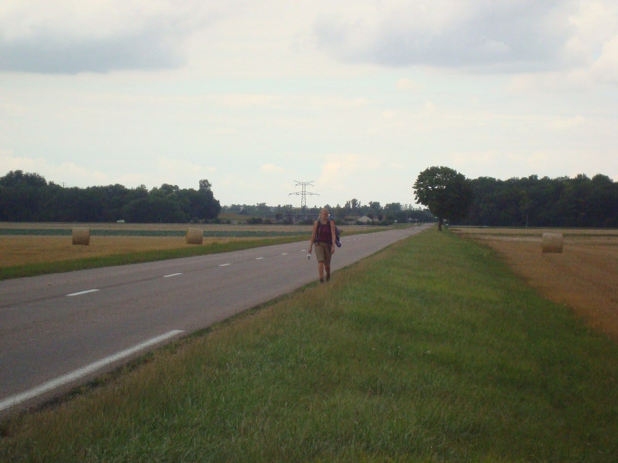 We vertrekken graag vroeg, omdat we in de morgen lichamelijk en geestelijk meer kunnen hebben. Dit gaat niet altijd op, vandaag zit het bij Jolanda allemaal niet lekker. Ze heeft wat last van haar knieën, algeheel vermoeide benen en twijfelt of het wel gaat lukken vandaag. We verplaatsen wat bagage naar de tas van Ewout.