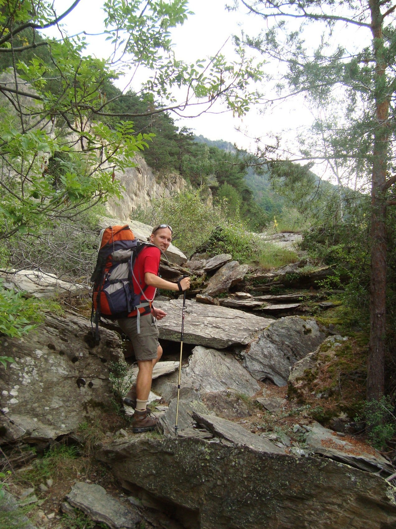 Het blijkt mee te vallen, de wiebertjes uit 1989 zijn vaag zichtbaar. We doen wel lang over de etappe, met backpack stijgen brengt onze loopsnelheid van vijf naar drie kilometer per uur.