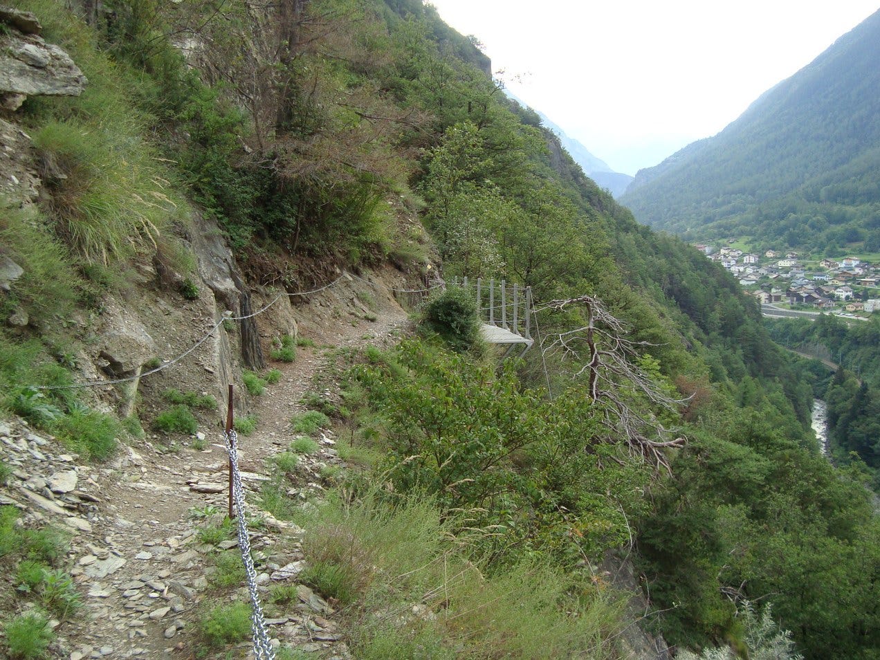 Deze dagen is er maar één weg naar Rome, die via het dal naar de voet van de berg. Er zijn een stuk of tien verenigingen die ieder met een eigen kleurtje hun unieke interpretatie van de route aangeven. We concentreren ons op het boek dat we hebben, plus de gele wiebertjes die Zwitserland voor wandelaars gebruikt. Het moet worden gezegd, de wiebertjes glinsteren vandaag mooier dan ooit tevoren.