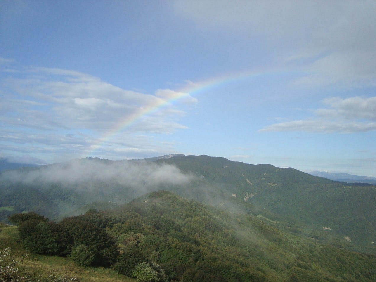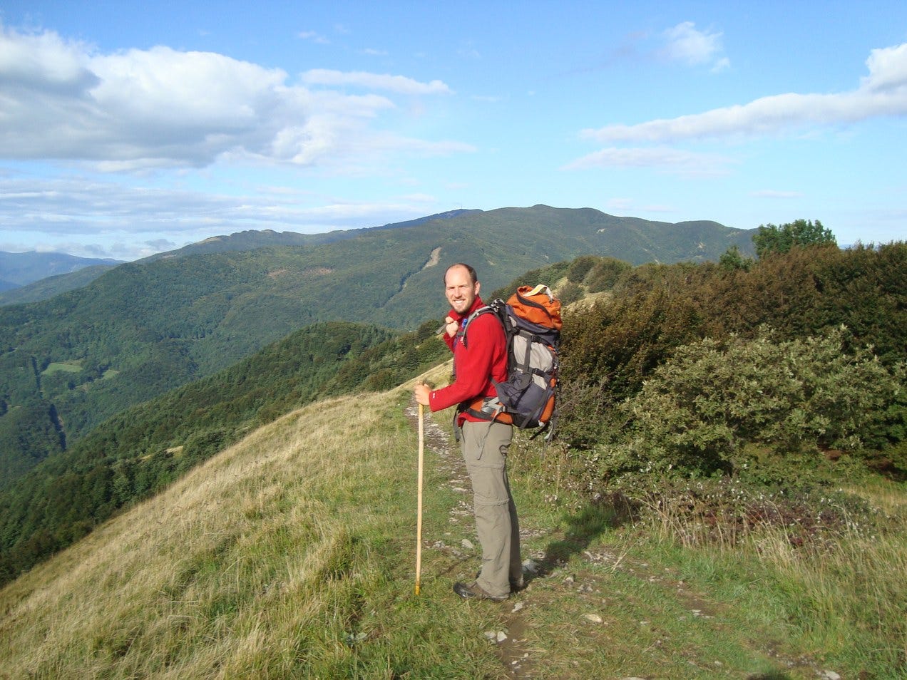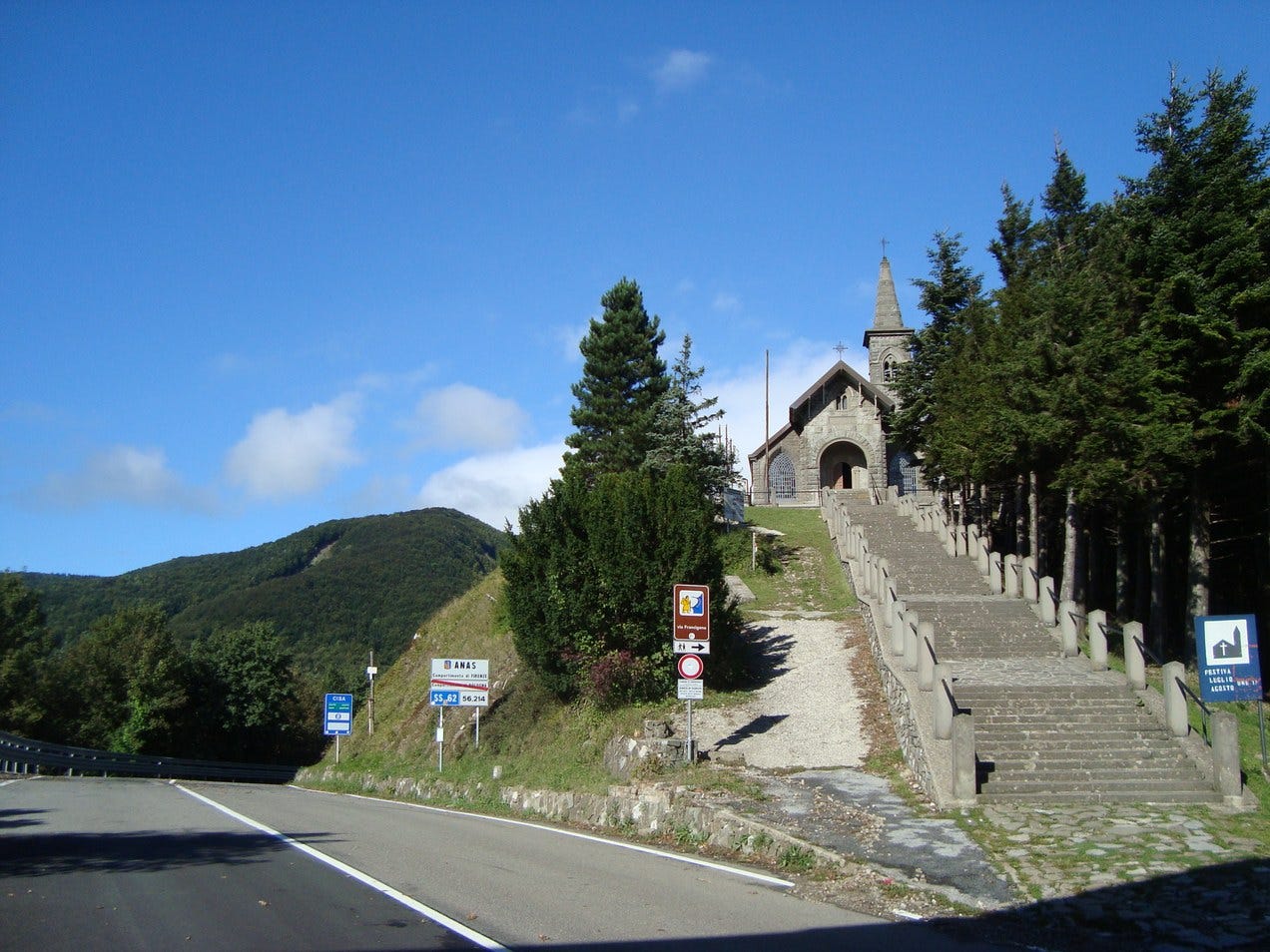 1200m up, 250m down. Na een picknick in het park zijn we fris en fruitig genoeg om deze klus te klaren. We wandelen fris alsof we gisteren uit Canterbury zijn vertrokken. De ondergrond bestaat uit mooie bospaden en vriendelijk asfalt, weinig verkeer en prachtige uitzichten. Op de Vittoria (1200m) hebben we een waanzinnig uitzicht over het dal, terwijl achter ons twintig wilde paarden rondrennen. Idyllisch, dat is gepast, zoals we zitten tegen een klein kapelletje.