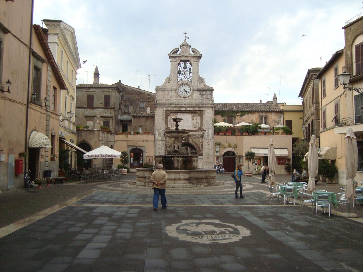 We hebben een lekkere herfstzon als we door de enorme hazelnootplantages lopen. Het is lastig navigeren tussen de kleine, groene boompjes maar gelukkig helpen diverse signalen ons een weg te vinden. Het is een heerlijke etappe, we pauzeren even in Capranica voor we aan de laatste kilometers beginnen. We merken dat we naar een grote stad toewerken: Er is veel verkeer, de straten zijn wat smeriger en het volk wat luidruchtiger. Capranica is een positieve uitzondering, het plein is aangeveegd.