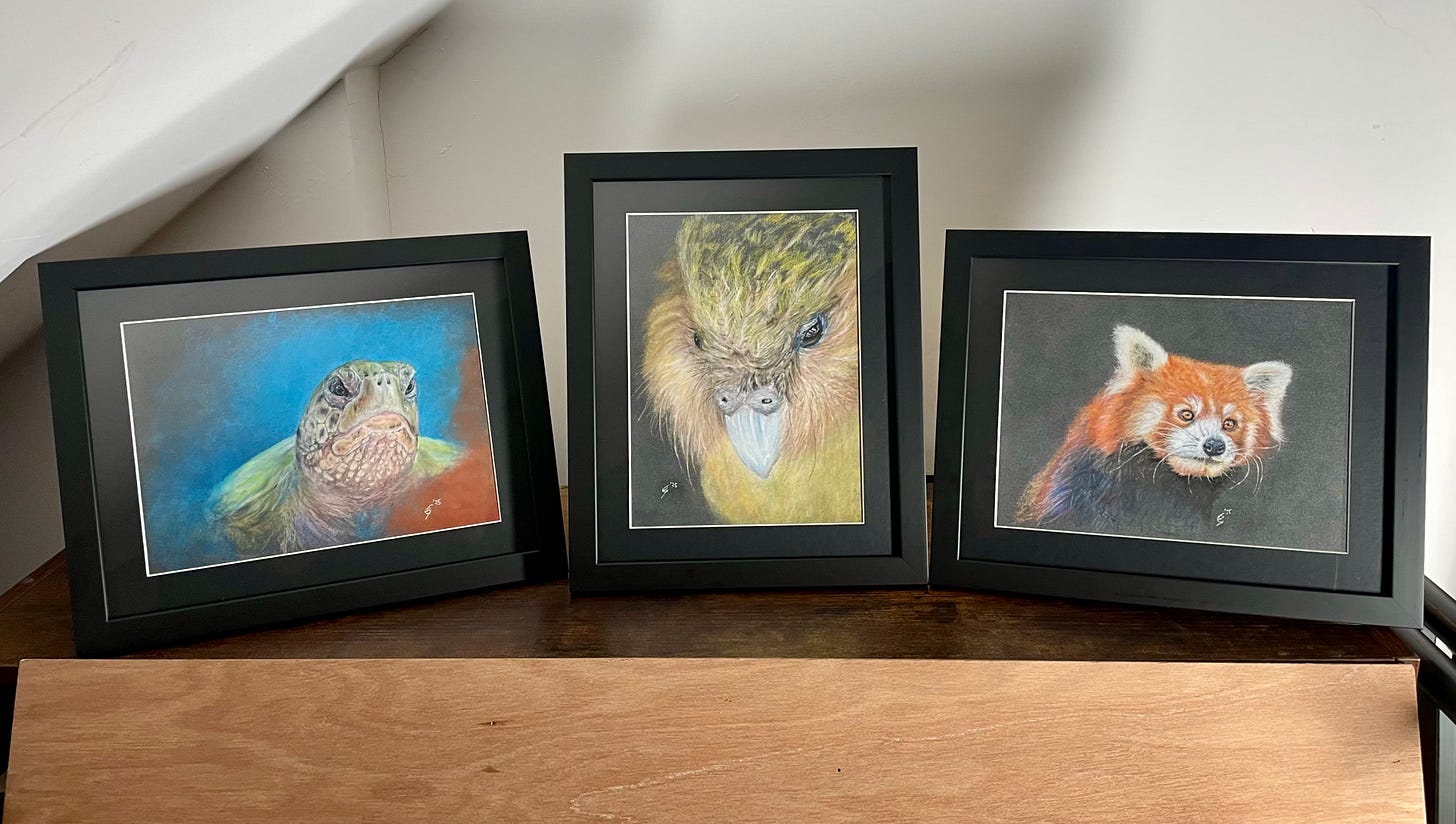 Deze tekening is onderdeel van een serie waar ik deze zomer aan ben begonnen: tekeningen van organismen die met uitsterven worden bedreigd (zie resultaat, tot dusver, hieronder). Ik speel met mijn techniek en stijl, van rauwe schets tot bijna realistisch portret, met ruimte voor het papier zelf (de donkere, bijna zwarte Pastelmat) en composities dicht op kop en ogen.
