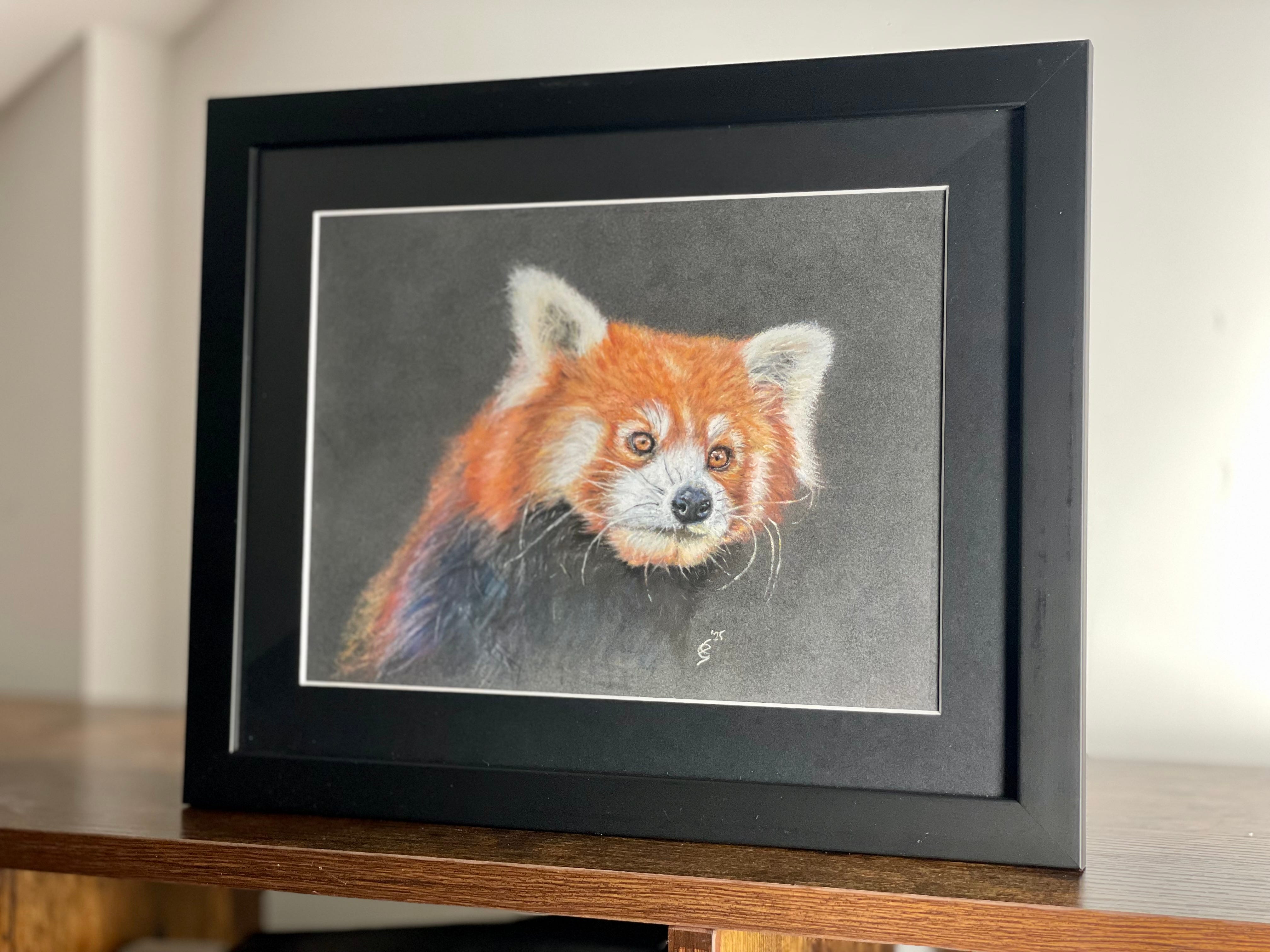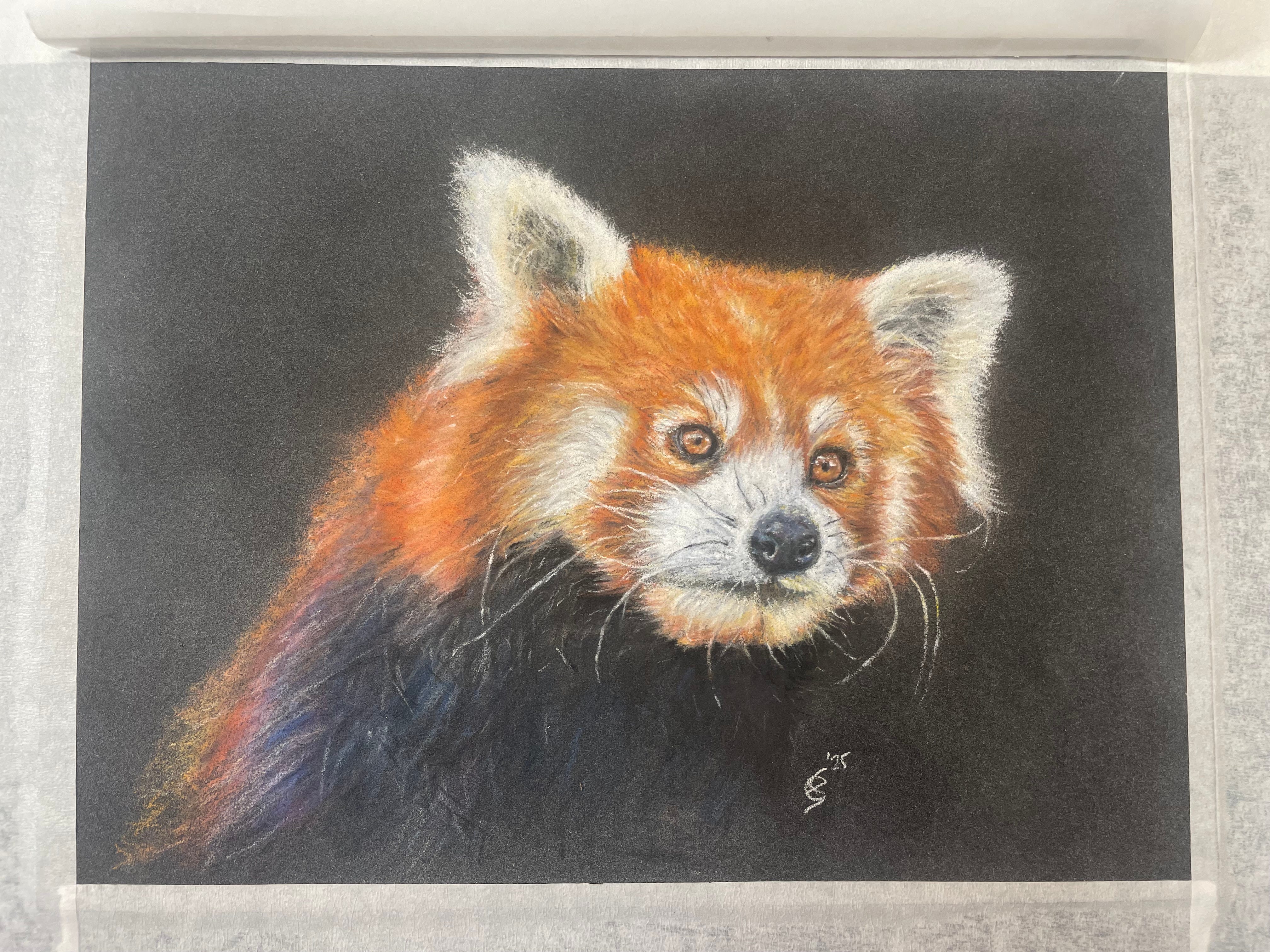 Ik tekende hier een kleine panda, een dier dat zich voortbeweegt als een kat en zich identificeert als vos (mijn woorden): licht, sierlijk en met een staart die half uit vlammen lijkt te bestaan. Die roodbruine vacht met koele schaduwen was heerlijk om te tekenen. Ondanks het treurige verlies van leefgebied en de dreiging door stroperij blijft het een onafgebroken fotogeniek soort, waarvoor dank.